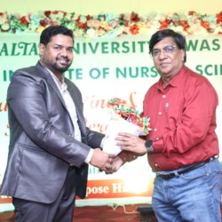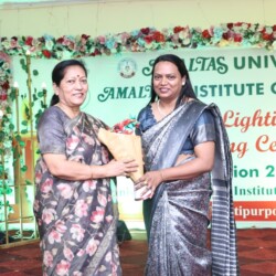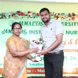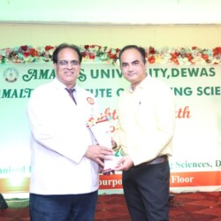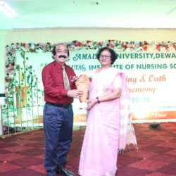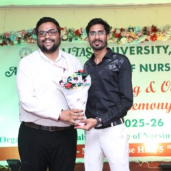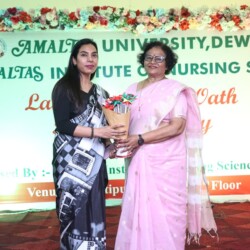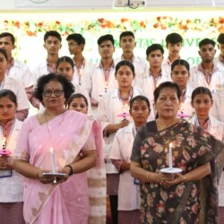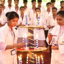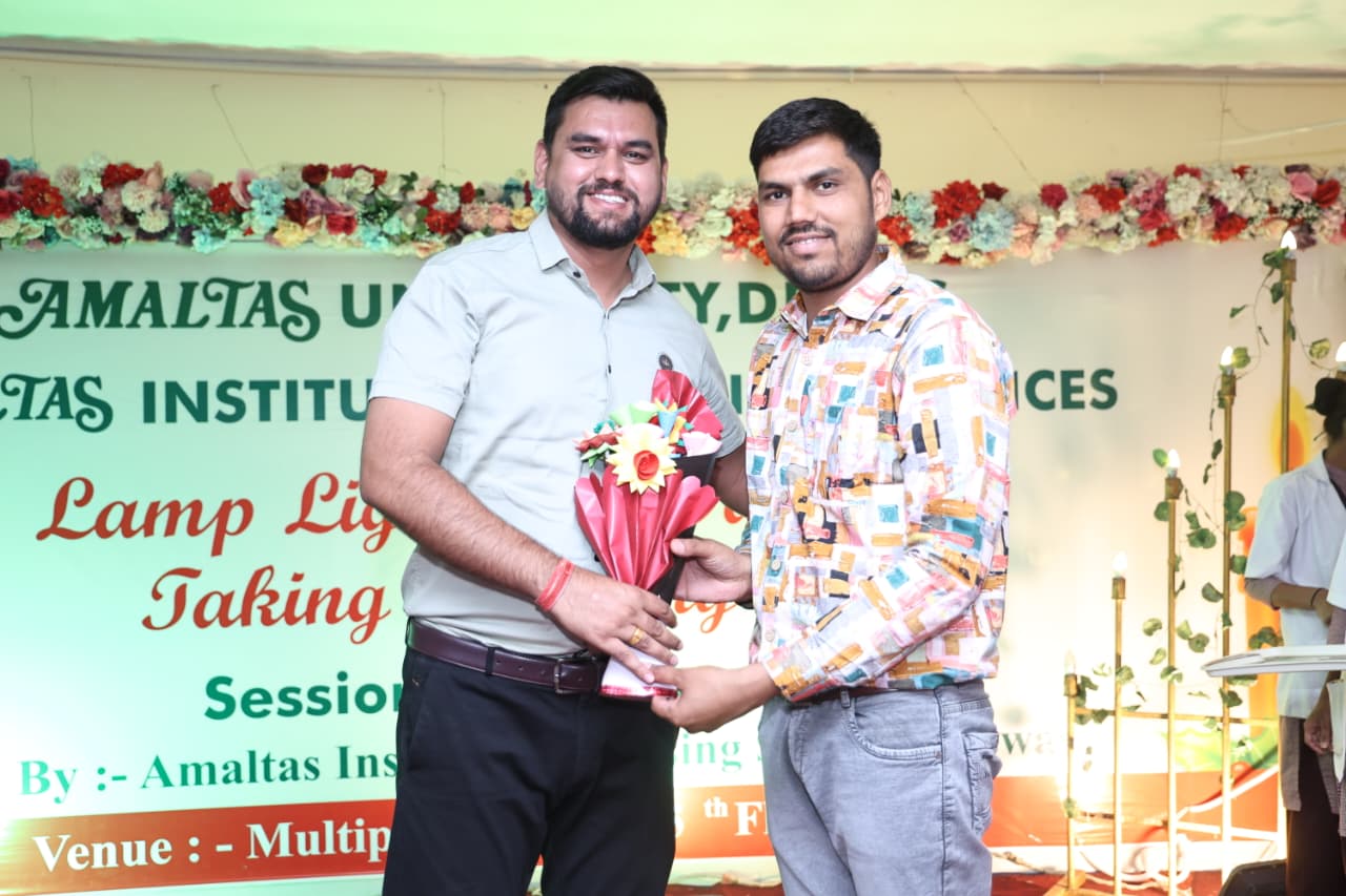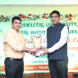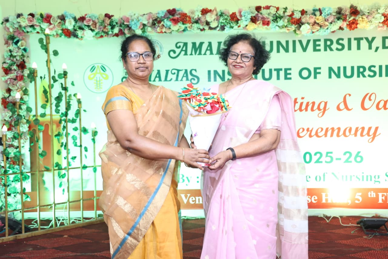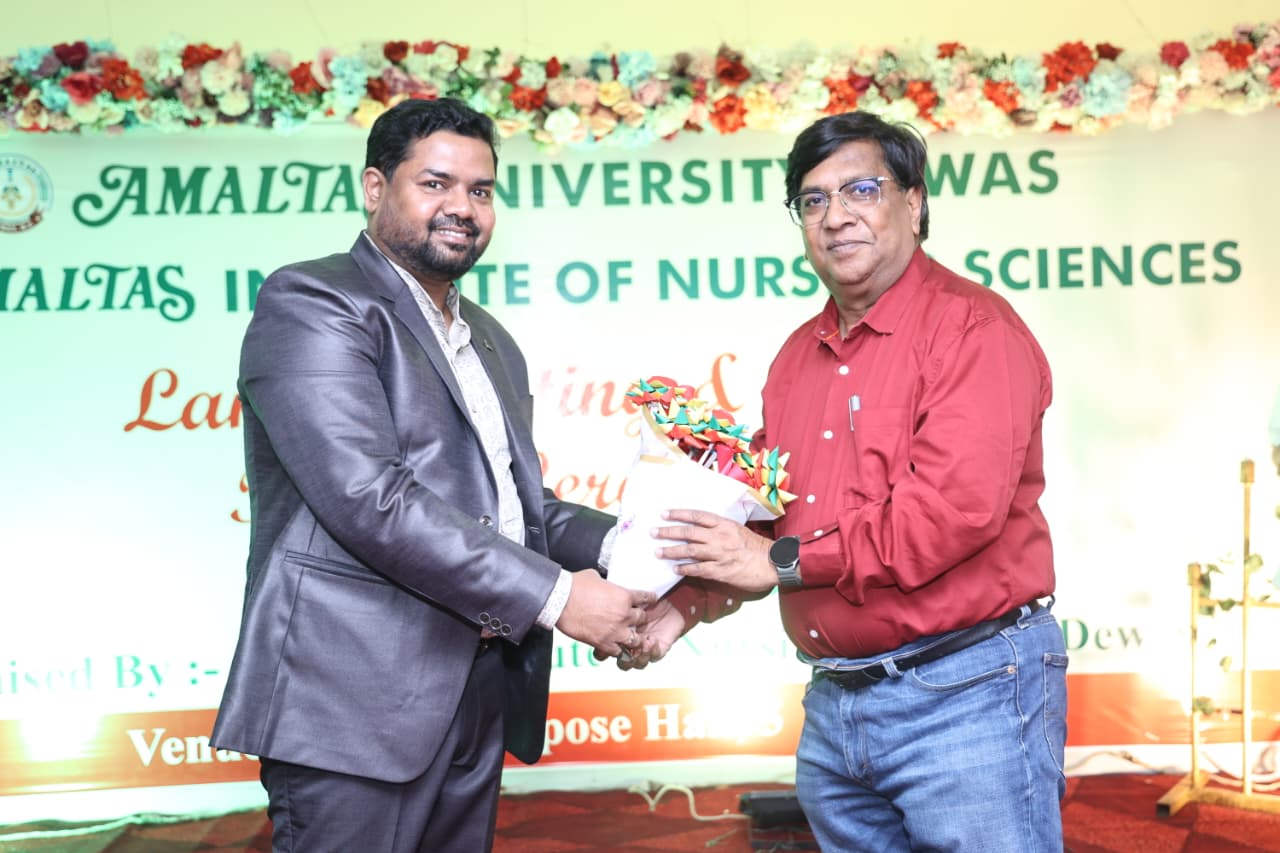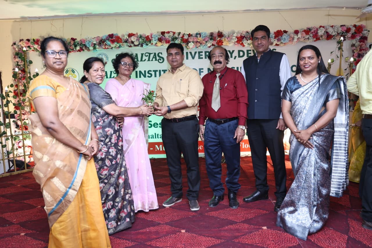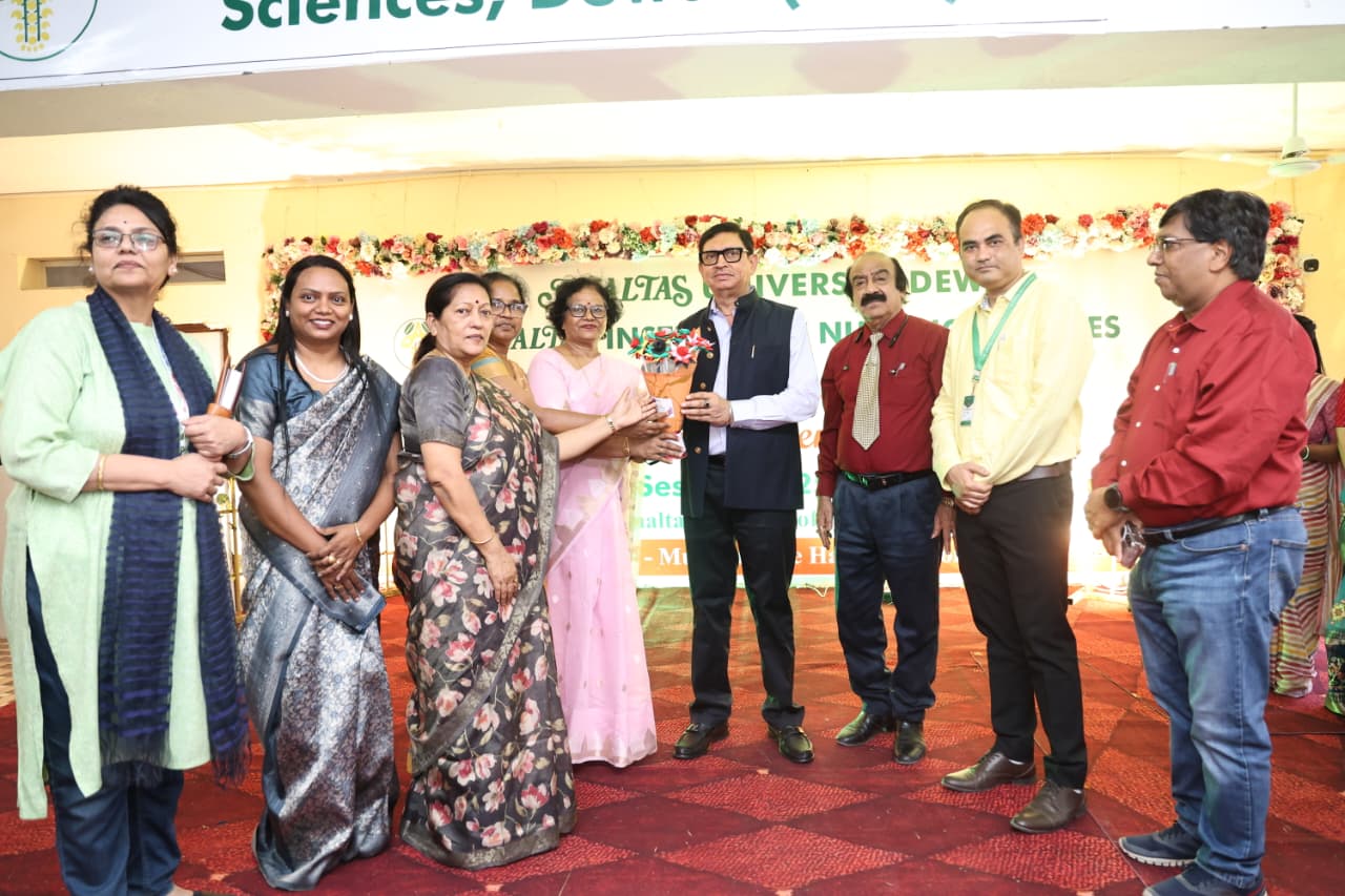 A lamp lighting and oath taking ceremony was organized at Amaltas Institute of Nursing Science for newly admitted B.Sc. Nursing and GNM students. The presence of Shri Suresh Singh Bhadauria, Founder of Amaltas Group, motivated and encouraged the students. The ceremony was graced by chief guests Dr. Deepak Pippal, Regional Joint Health Officer, Dr. Neha Titus, Principal, Patidar Nursing College (Ujjain), and Dr. Sarojini Jamesbek, Chief Medical and Health Officer, Dewas. The dignitaries highlighted the importance of nursing as a noble and service-oriented profession. Principal Dr. Sangeeta Tiwari informed students about the wide scope of nursing and shared that nursing officers today serve not only in hospitals but also in community health, military, air force, navy, forensic, research, legal advisory, and infection prevention roles. During the ceremony, Dr. Peter administered the oath of service and dedication to the students, while Vice-Principal Dr. Mohsin Khan presented the annual progress report. Meritorious students were also honored for their academic and extracurricular achievements. On this occasion, Vice Chancellor Dr. Sharad Chandra Wankhede, Registrar Dr. Abhay Gupta, Director Dr. Prashant, Hospital Manager Dr. Manish Sharma, Dr. Sneha Sahay, along with faculty members and staff of the nursing college, were present.