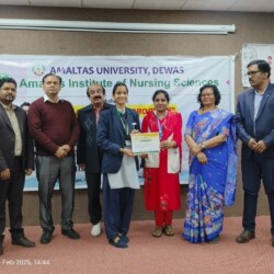An HMPV (Human Metapneumovirus) Awareness Workshop was organized at Amaltas Institute of Nursing Sciences, Dewas. The workshop was inaugurated by Vice-Chancellor Dr. SharadchandraWankhede and Registrar Mr. Sanjay Rambole. Experts provided detailed insights on HMPV infection, its symptoms, diagnosis, prevention, and nursing care. The session concluded with an interactive Q&A round, followed by a vote of thanks by Nursing Principal Dr. Sangeeta Tiwari. Chairman Mr. Mayank Raj Singh Bhadoriya emphasized that awareness is the best preventive measure against infections.