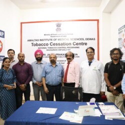 Public Welfare Initiative by Shanti Avedna Trust and ICSR in Collaboration with RRCAT. Indore, May 31, 2025 — On the occasion of World No Tobacco Day, a new public health initiative was launched with the inauguration of a Special Cancer OPD at Amaltas Medical College, Dewas. This initiative has been undertaken through the joint collaboration of Shanti Avedna Trust, the Institute of Cancer and Stem Cell Research (ICSR), and the Raja Ramanna Centre for Advanced Technology (RRCAT). The event witnessed the presence of Dr. S.S. Nayyar, Chairman of ICSR, along with key scientists from RRCAT, including Dr. KhageshwarSahu, Dr. Hemant Krishna, Dr. Khan Mohammad Khan, and Mr. Nitin Kumar, who actively participated and emphasized the importance of this initiative for society. This Special OPD is primarily dedicated to early screening, awareness, and free consultation for oral, breast, and cervical cancers. It will offer diagnostic and counseling services using advanced technologies. In the coming days, this facility will be developed into a regular OPD, benefiting both rural and urban populations. Speaking on the occasion, Dr. S.S. Nayyar stated, “Our goal is timely cancer detection, proper patient guidance, and taking a step forward towards a Cancer-Free India.” The event was graced by Dr. Sharad Chandra Wankhede (Vice-Chancellor, Amaltas University), Dr. Prashant (Director), Dr. Sameer Desai (Head of Psychiatry Department), Dr. Surya Pratap Singh (TB Specialist), and Dr. Shivkumar Pandey. Mr. Mayank Raj Singh Bhadoriya, Chairman of Amaltas Hospital, highlighted that this initiative is a significant step towards creating awareness about tobacco and cancer among the masses and promoting early treatment interventions.