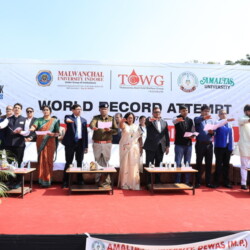 In a remarkable initiative to prevent Thalassemia, 6,500 students from Malwanchal University, Indore, and Amaltas University, Dewas, took an oath to undergo a blood test before marriage along with horoscope matching.The event, organized jointly by Malwanchal University, Amaltas University, and Thalassemia & Child Welfare Group, set a World Record recognized by the World Book of Records, London.Chief Guest Indore Divisional Commissioner Deepak Singh administered the oath to the students. The pledge stated that if found to be a Thalassemia carrier, they would not marry another carrier to prevent the disease’s transmission.The ceremony witnessed the presence of Dr. B.S. Saitiya (Indore CMHO), Additional Commissioner Amit Singh, senior advocate Pragya Singh, and social worker Virendra Singh Thakur.World Book of Records CEO Santosh Shukla presented the award. Mr. Mayank Raj Singh Bhadoriya, Vice Chairman of Amaltas Group, emphasized that this initiative is not just a record but a historic step towards eliminating Thalassemia from the region.Dr. Ranjani Bhandari, President of Thalassemia & Child Welfare Group, provided awareness about the disease. Senior officials, deans, and faculty members from both universities also attended the event.
