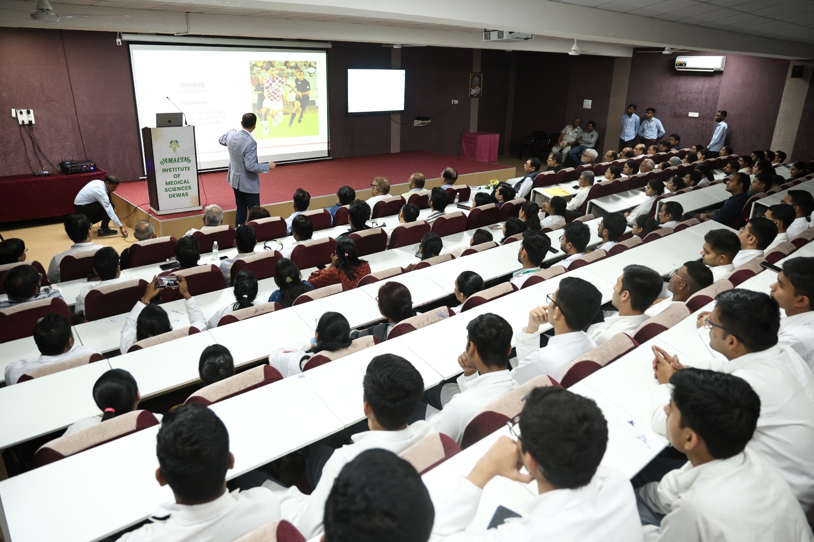 Dewas: A workshop on advanced medical techniques was organized at Amaltas Medical College under the guidance of internationally renowned expert Dr. Dragan Primorac. Doctors, faculty members, and students actively participated in the session.